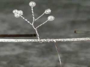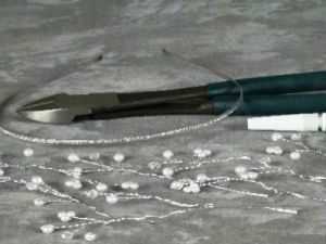 Используя кусачки, нужно нарезать тонкую проволочку на отрезки протяженностью восемь сантиметров каждый в количестве двадцати пяти штук. Каждый кончик отрезка следует продеть в бусину или бисерину. Затем скрутите небольшую петлицу, чтобы зафиксировать заготовку. Выполните плетение нескольких веточек с 2-я или 3-я элементами по краям. Далее следует соединить заготовки по три или пять штук в одном элементе. Следите за тем, чтобы стекляшки были расположены на разном удалении друг от друга. В итоге у вас получится семь или восемь букетиков. После этого можно приступать к оформлению бижутерии такими заготовками, чередуя их прикручивание проволочкой.