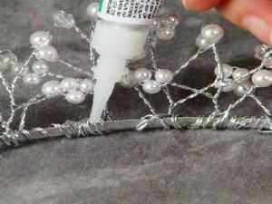Если вам нравится то, что вы сделали собственноручно, тогда необходимо зафиксировать клеем основной материал в том месте, где произошло соединение с ободком. Это делается для того, чтобы веточки не могли по отдельности проворачиваться сами по себе, портя при этом прическу обладательнице такой бижутерии. Теперь простая мини корона полностью готова. Проявив свою фантазию, вы сможете добавить к этому изделию другие подходящие элементы, которые сделают это украшение еще более торжественным и красивым. В конце статьи вы сможете рассмотреть другие схемы плетения данной бижутерии, а также изучить видео уроки опытных рукодельниц.