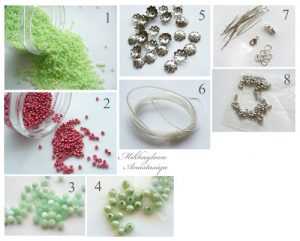 бисер салатового и красного цвета;