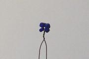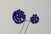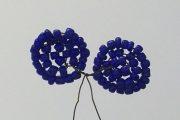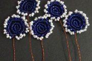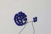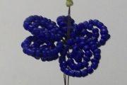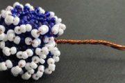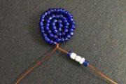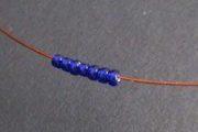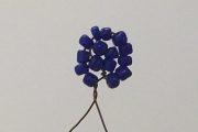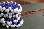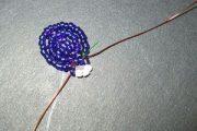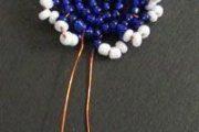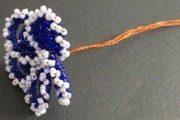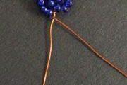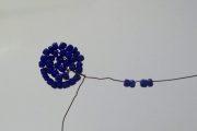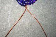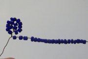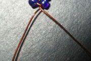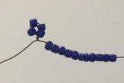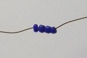 - Нанизайте на проволоку четыре бисерины синего цвета и разместите их таким образом, чтобы один из концов проволоки был несколько короче на десять сантиметров;