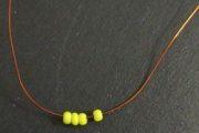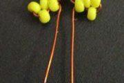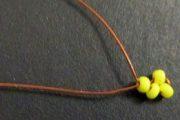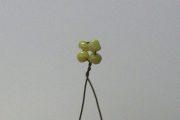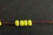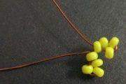 - Возьмите проволоку (двадцать сантиметров), нанизайте четыре бисерины желтого оттенка и распределите их посередине;