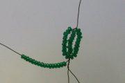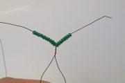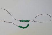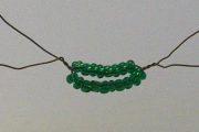 - Для изготовления следующей петли нанизайте на длинный конец проволоки двадцать бисерин. Следите за тем, чтобы петелька была заполнена полностью;