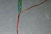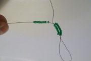 - Нанизайте одиннадцать бисерин на длинный конец;