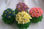 Невероятно стильно и красиво в домашнем и офисном помещении смотрится миниатюрная махровая фиалка. Изготовить ее можно, применяя технику плетения дугами. Следуйте рекомендациям, которые предлагает наш мастер-класс для начинающих, и искусственные цветы будут радовать вас также, как и живые.