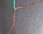 - Возьмите конец проволоки с нанизанными элементами и аккуратно пропустите его между второй и третьей петлей так, как показано на фото;