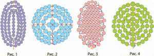 Первые две полосы плетите также, как было описано ранее. Но когда будете переходить на следующий ряд, выдержите угол в сорок пять градусов, если сравнить его с первой полосой. Еще один важный нюанс, постарайтесь сделать так, чтобы последняя бисерина второго ряда находилась между начальными элементами третьего р.
