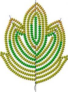 Аналогичным образом понадобится смастерить завиток вокруг оси, а потом снова набрать необходимую численность бисерин. Чтобы сформировать листочек, выполните по 6 дуг с левой стороны и столько же с правой стороны. В самом конце оберните проволочкой несколько раз вокруг оси. Это была описана технология изготовления листика или лепестка круглой формы. А теперь предлагаем вам ознакомиться с тем, как сделать остроконечную форму изделия.