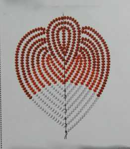 Удлиненный край основного материала почти полностью заполняют нанизанными бисеринами, оставив только лишние и незатронутые пять сантиметров. Не обязательно использовать бисерины одной цветовой гаммы, это могут быть совершенно разные оттенки. Проявите креативность и ваше изделие получится максимально оригинальным. Учтите тот момент, что на первую дугу должно уйти на несколько бисерин больше, чем на следующие.