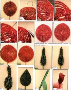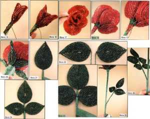 Как уже упоминалось раньше, для того чтобы сплести из бисера цветы, их лепестки и листья, вам понадобится знать именно французский способ рукоделия. А для этого пригодиться схема, на которой все подробно изображено.