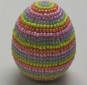 На этом мастер-класс завершен, пасхальное яйцо из бисера готово. Таким образом, изменяя цвет основного материала, вы своими руками сможете сделать очень красивые поделки к празднику Пасхи, которые пригодятся вам для декора пасхального стола или в качестве памятных подарков к светлому празднику для друзей и близких.