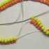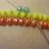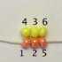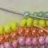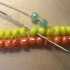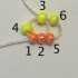 Приступаем к работе и начинаем бисероплетение и мастер-класс. Нанизываем на нитку по две ОРБ и ЖБ. Перемещаем их на расстояние десяти сантиметров от кончика нити (там, где не задействована иголка). В уме пронумеровываем бусины: первые две оранжевые это соответственно первая и вторая. Следующие две желтые – это третья и четвертая (как на фото).