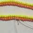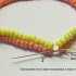 Так как начальная линия состоит из оранжевого бисера, в продолжении оплетения необходимо вывести нитку к верху сквозь ЖБ. Таким образом, последующая, третья линия помещается над линией желтых бусинок.