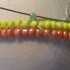 Окончание верхушки может быть совершенно разнообразным. Когда заключительный ряд выходит из пяти-шести штук основного материала, возможно внутри него произвести приплетение лишь одной бисерины. В данном мастер-классе, заключительный ряд из зеленого бисера состоит из девяти бусин, поэтому в него вплетаются три бисерины маленького калибра.