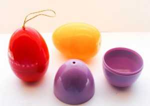 Можно сделать специальный шнурочек для пасхального яичка и вставить интересную тонкую веревочку или шпагат в просвет на верхней части пластикового элемента. Сделать это нужно до момента оплетения верхней и нижней части изделия.