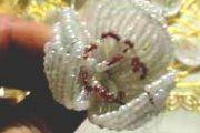 Для того чтобы сделать сердцевину нам понадобится белый и розовый бисер. Этот элемент выполняется в петельной технике плетения. Видео, показывающие основы этой техники, а также схемы можно найти в наших статьях по бисероплетению.
