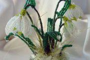 Этот мастер-класс можно взять за основу создания композиции. С количеством цветов, бутонов, размерами подснежников, вариантами оформления можно поэкспериментировать. Фото готовых работ могут вдохновить на создание композиции «подснежники из бисера».