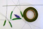Моделируем плотный ствол: обматываем проволоку зеленой лентой и прикручиваем наши веточки лаванды.