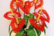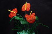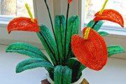 Антуриум еще называют цветохвостом за интересный вид его початка и оригинальное «покрывало» в виде лепестка. Такой необычный цветок хоть и не часто используется в бисероплетении, но все же он достоин того, чтобы уделить ему внимание. Для его создания чаще всего используют французскую технику плетения, на основе которой и будет построен предложенный мастер-класс. Также мы рассмотрим на примере схемы еще один интересный вариант, который поможет вам создать антуриум из бисера и оформить цветочную композицию в красивый букет.