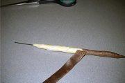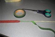 Вершину и непосредственно сам стебель нужно обмотать сначала используя скотч, а затем флористическую ленту (для вершины коричневого цвета, для стебля – зеленого).