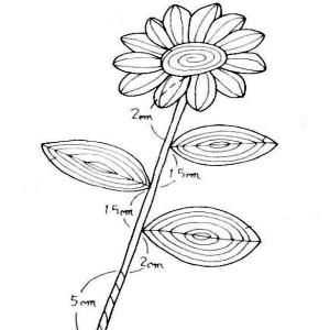Самое последнее, что остается сделать – это собрать цветок воедино. Крепим надежно к стеблю листья, и можно сказать, что ярко-желтый цветок полностью готов!
