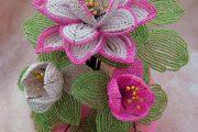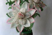 По желанию, вы можете создать полноценный куст гардении из бисера. Для этого дополнительно можно изготовить бутоны, которые включают в себя пять лепестков (два лепестка среднего размера и три – маленького).