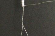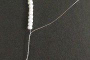 Для гардении из бисера нам осталось сплести девять больших лепестков. Для этого приготовим отрезок проволоки семьдесят два сантиметра в длину. На одном конце проволоки создаем петельку. На ось в шесть сантиметров нужно нанизать десять белых бисеринок.