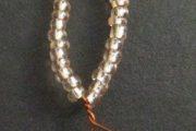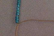- Нанизываем на проволоку двадцать восемь бисеринок золотистого цвета;