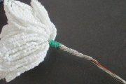 Теперь, используя нити и клей, необходимо обмотать проволочку от места последнего крепления больших лепестков на пять миллиметров к низу.