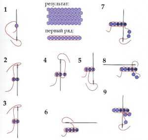 - В процессе кирпичного бисероплетения, ряды необходимо считать горизонтально снизу.