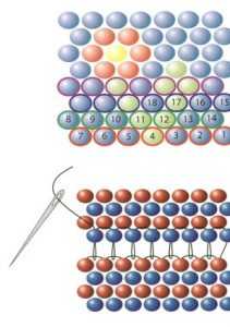 - Бисер всегда на рисунке проставлен цифрами в том порядке, в котором следует проводить нанизывание стекляшек.