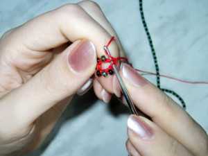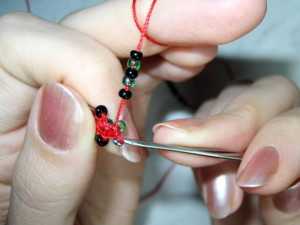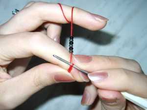После этого иголкой проходим от верхушки к низу в начальную бусину.