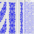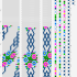 В качестве примеров, изучим некоторые схемы с орнаментами. На представленных трех схемах, указывается число бисера в рядах, соответственно шесть, пятнадцать и двадцать пять. Бисерины набираются по правой колонке. Цифры вблизи цветных квадратов показывают последовательное число бисеринок в каждом ряду. Первая схема содержит рапорт, складывающийся из одной колонки. Две последующие складываются уже из пяти (здесь представлены более сложные орнаменты для жгутов). Набор столбцов происходит от верха к низу и с левой на правую сторону.