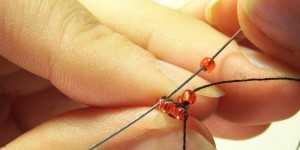 Чтобы начать бисероплетение или вязание, нужно осуществить набор бисера последовательной цепочкой согласно выбранной схемы. Для начала, потренируйтесь с простыми цветовыми сочетаниями, пробуя набирать бисер через один, сочетания межу собой, например, материал черного и белого цвета. При вязке жгута используйте тонкие нити, так вам удобнее будет набирать бисерины.