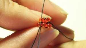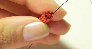 Аналогичным способом нужно провязать все шесть штучек бисера. Постарайтесь сделать вязку плотной.