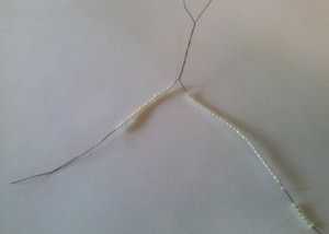 Итак, начинаем плетение заготовки пиона. Наберите бисерины на тонкую проволочку, протяженностью один метр. Затем второй край закрутите так, чтобы оставался кончик приблизительно в десять сантиметров. Опять нанизывайте двадцать бусин, а потом обвяжите первую проволоку по окружности небольшим отрезком и сделайте оборот 1 раз. У вас должно получиться 2 сгиба. Повторите аналогичные манипуляции так, чтобы у вас образовалось всего семь дуг.