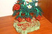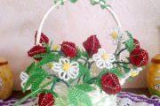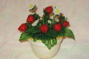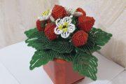 В этом уроке вы научитесь плести вкусненькую ягоду, которую так и хочется скушать. Поскольку эта ягодка круглый год не растет, мы предлагаем смастерить вот такую оригинальную композицию – клубника из бисера с цветочками. Ведь такая икебана, как на фото уж точно будет спелой круглый год.