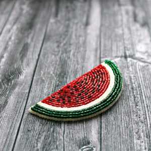 А теперь давайте перейдем к следующей поделке. Это всеми любимый арбуз, который мы ждем практически все лето, чтобы насладиться его вкусом и ароматом. Хотя это и считается ягодой, тем не менее, мы не смогли не предложить вам его сплести. Итак, приготовьте прозрачный красный материал, розовый и зеленый, а также немного темного, чтобы сделать косточки.