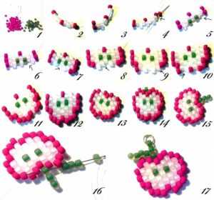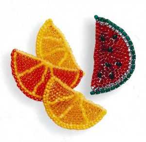 Бисер должен не плотно располагаться в р. и не тесниться друг с другом. Если вы обнаружите в конце р. оставшееся небольшое место, в которое не протиснется бисерина, то не пытайтесь это место даже заполнить, так как в этом случае фруктовая долька лимона может получиться не совсем плоской.