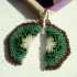 Первым делом плетите мозаичную гряду из прозрачных бусин так, как показано на рис А и Б. Новый ряд делается кирпичной техникой из красных стекляшек, которые также нужно разбавить и темными. 4-ый р. плетут только до серединки, а потом добирают 1 бисерину и закрепляют нить за предыдущий ряд. Новые полосы следует нанизывать дугообразно. Бусины-косточки вставляют следующим образом: нанизывайте сразу темную стекляшку и красную, крепите их также, как это было описано ранее. Черная бусинка должна встать по вертикали между двух алых. Таким образом вы должны расположить и остальные стекляшки в арбузе.