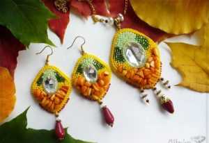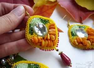 - желтые, салатовые, зеленые и бордовые бисерины;