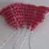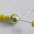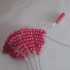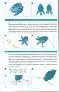 Одинаковые действия совершите и со следующими элементами, которые тут же необходим прикрепить к уже сделанным. Возьмите проволочку протяженностью тридцать сантиметров и проведите между первым и вторым рядом предыдущие лепесточки. Далее на верхушку следует нанизать шесть элементов, а на низ только пять штук. Через верх протяните кончик с пятью бисеринками, а потом все стяните. Смотрите за тем, чтобы края получались одинаковой длины.
