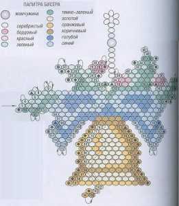 Мастер-класс начинается с того, что вам необходимо взять отрез проволоки приблизительно тридцать сантиметров. Затем наберите на нее одиннадцать бисерин того цвета, который вы выбрали. Далее поделите стекляшки следующим образом так, чтобы на одном краю было пять бисерин, а в другом шесть. Возьмите тот край, где стекляшек больше и проведите отрез проволочки сквозь пять бусин. Потом стяните и у вас должно получиться 2 ряда. Для следующей полосы понадобится четыре бисерины, которые следует нанизать и также протянуть, а потом снова стянуть заготовку. Новые ряды плетут аналогично третьей полосы.