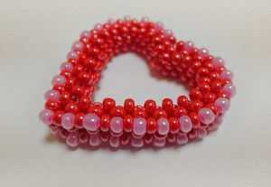 Далее разверните заготовку, сделав прямой угол, и направьте его в ту сторону, где находитесь вы. Края столбца заведите к себе, соедините и сшейте, сохранив все тот же прямой угол поделки. Теперь можно заметить, что у вас получилось маленькое сердце. Если хотите, чтобы поделка из бисера была намного прочнее, тогда закрепите ее с помощью дополнительных бусин. Их лучше всего взять немного большего размера, и чтобы цвет также был контрастным, но не намного. Изделие получится более оригинальным, если вы воспользуетесь вместо стекляшек простой рубкой. За счет этого сердце начнет блестеть.