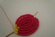 Для изготовления тычинки нанизываем на проволочку шесть бисеринок. Далее берем один из кончиков проволочки и продеваем ее в обратном направлении сквозь пять бисеринок, минуя первую.