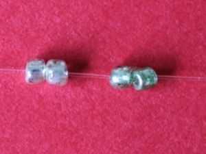 - две штучки темного бисера, изумрудного, желтого и светло-зеленого;