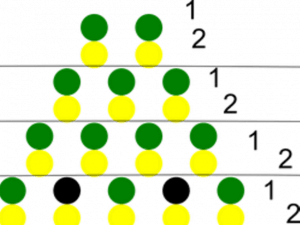 Первые два ряда должны быть в плотную находиться вместе. Нанизывайте еще бусины и приступайте к формированию следующей полосы.
