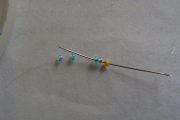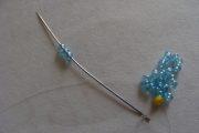 - голубой (розовый, белый), зелёный и желтый бисер;