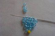 Проводим иглу через 2 соседние бисеринки соседних ячеек и вдеваем еще 3 штучки. Иглу выводим, леску затягиваем, подводим ее к четырём верхним бисеринкам и вновь выводим, затягивая леску.