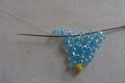 Снова нанизываем на леску 4 голубых бисеринки и снова выводим иглу через ту, из которой игла только что выходила. После натяжения лески получаем вторую ячейку 2-ого ряда лепестка.