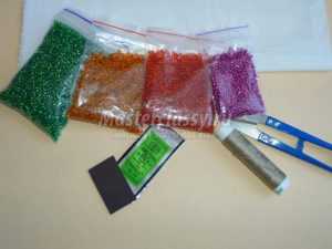 - бисер красного, зеленого, оранжевого и фиолетового цвета;
